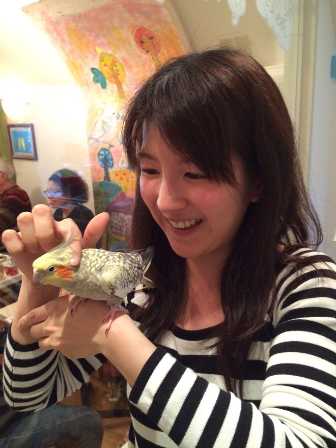 オカメインコちゃんは人懐っこくて、自ら「ココなでて!」と撫でてほしいところを差し出してくれる可愛さ。
