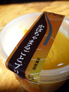 我が家の冷蔵庫にいつのまにかストックしてあった、カボチャプリン!