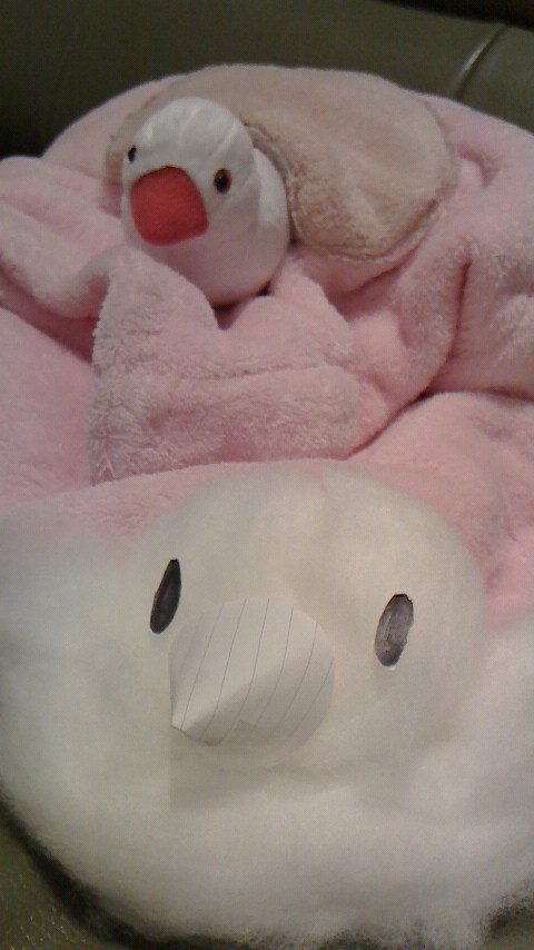 なにかの緩衝材だかで、ふわふわな綿っぽいものがあったので、自然とこうなりました。