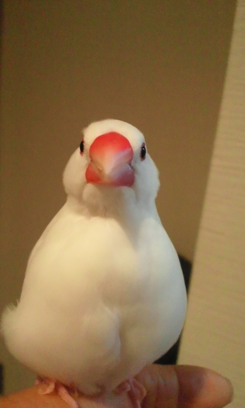 誕生日に貰った文鳥型ストラップを携帯につけて写真を撮ったせいか、警戒されまくり。